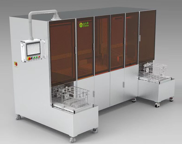 结构特点:漂洗、超声波清洗、甩干等工序;智能抓取系统: 功能水槽内产品间工艺的智能搬运,降低人员作业强度,节省人力,提高效率;离心脱水单元: 通过高转速的离心转动,快速甩干节省人力及工序。